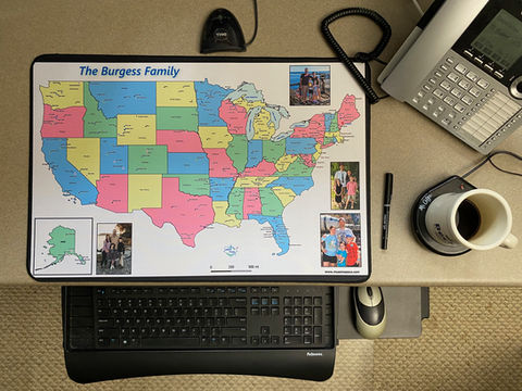 Provide us with your family's first and last names, along with the towns where you have lived and a few family group pictures, and we'll craft you custom placemats of the USA with the towns, mountains, lakes... that have your names!